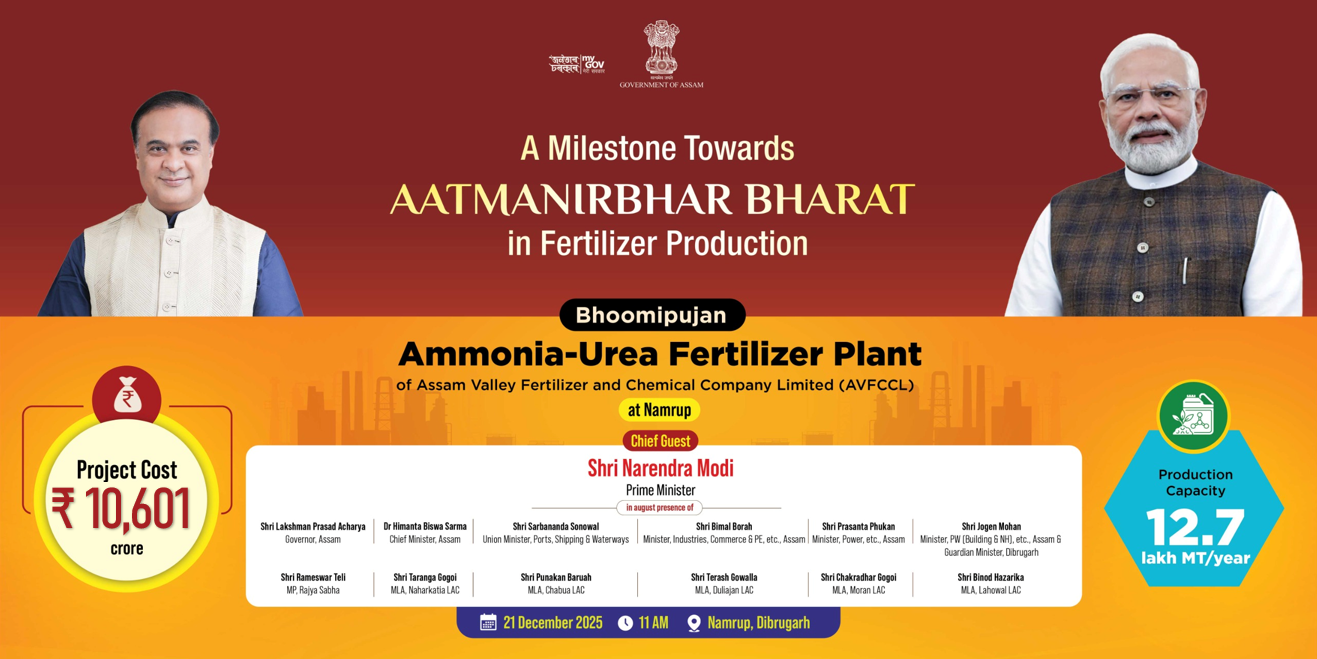 Assam Valley Fertilizer and Chemical Company Limited (AVFCCL) is a joint venture between the Government of Assam (GoA), National Fertilizer Limited (NFL), Oil India Limited (OIL), Hindustan Urvarak And Rasayan Limited (HURL) and Brahmaputra Valley Fertilizer Corporation Limited (BVFCL). (JV) Company.